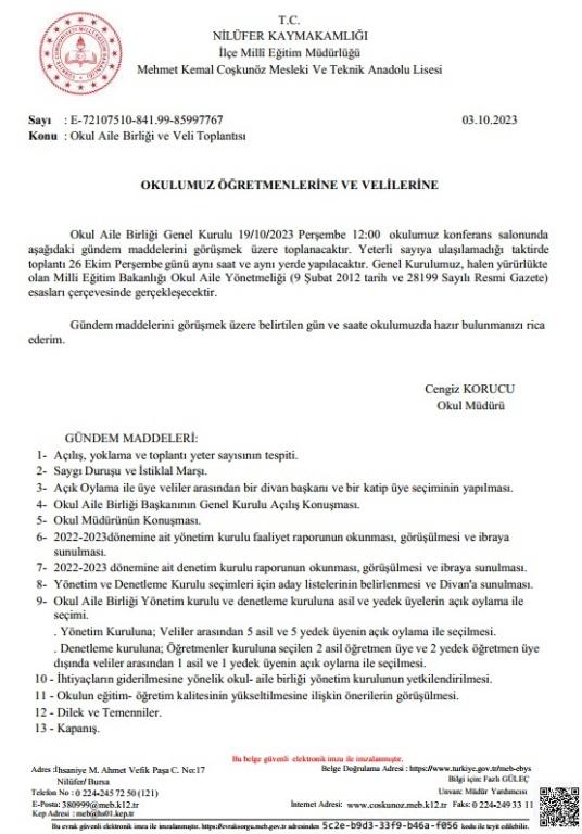 BURSA / NİLÜFER - M. Kemal Coşkunöz Mesleki ve Teknik Anadolu Lisesi